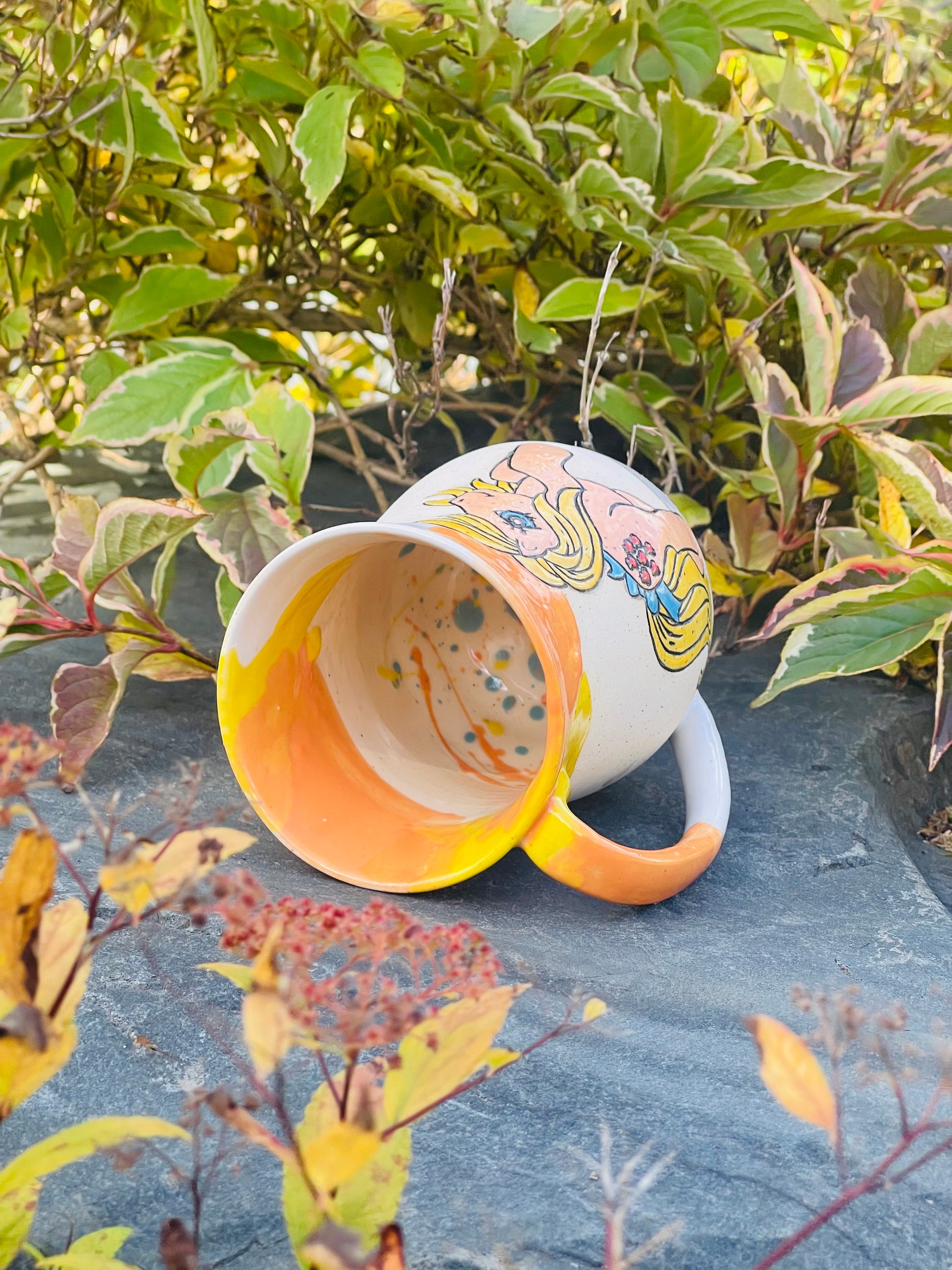 Colourful rim and liner, exact combo will vary. Mug shape may vary slightly.