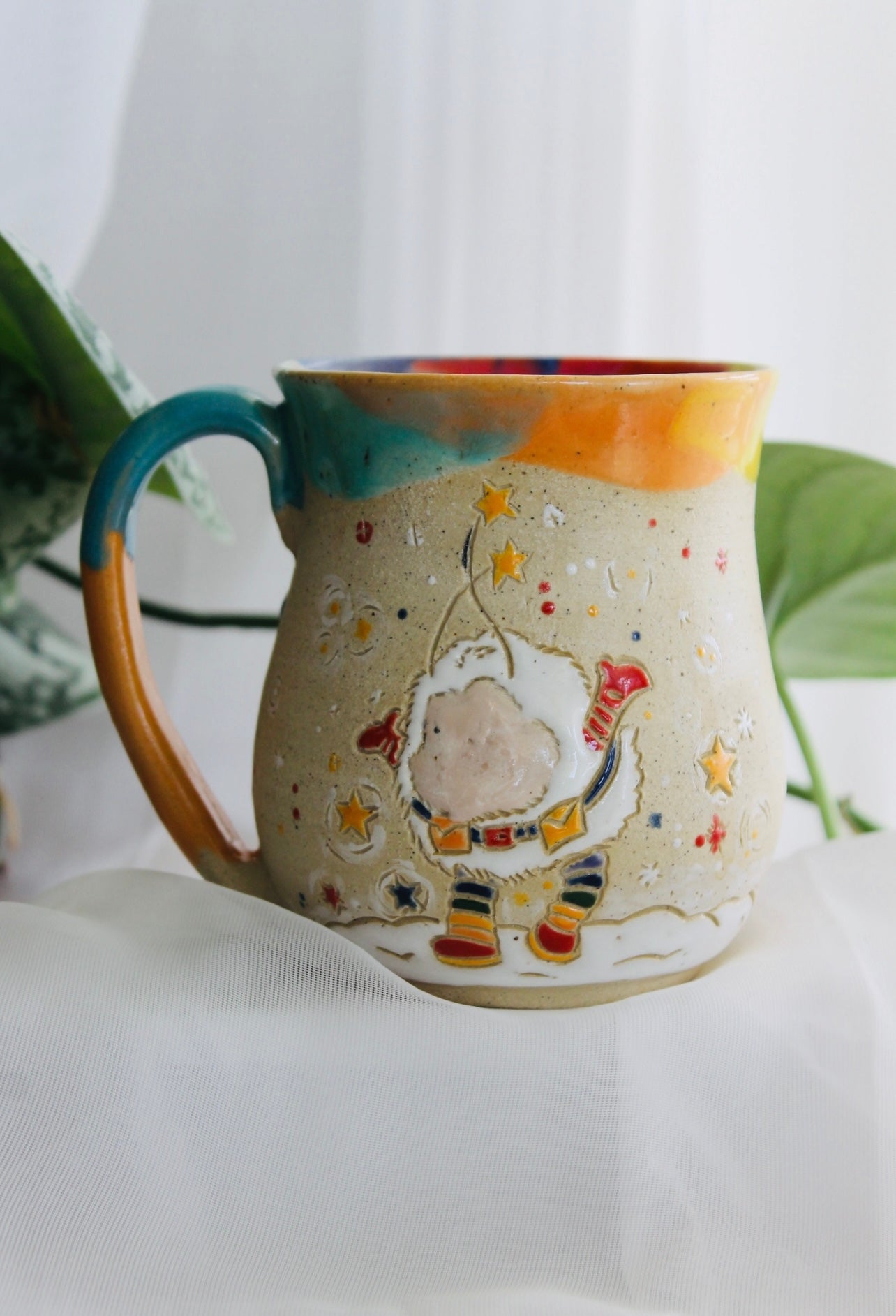 Colourful rim and liner, exact combo will vary. Mug shape may vary slightly. You are ordering a made to order, functional piece of art. Each piece is unique and one of a kind. This item is handmade and may have flaws or imperfections. Such markings occur as part of the creation process which gives each item it's unique character.