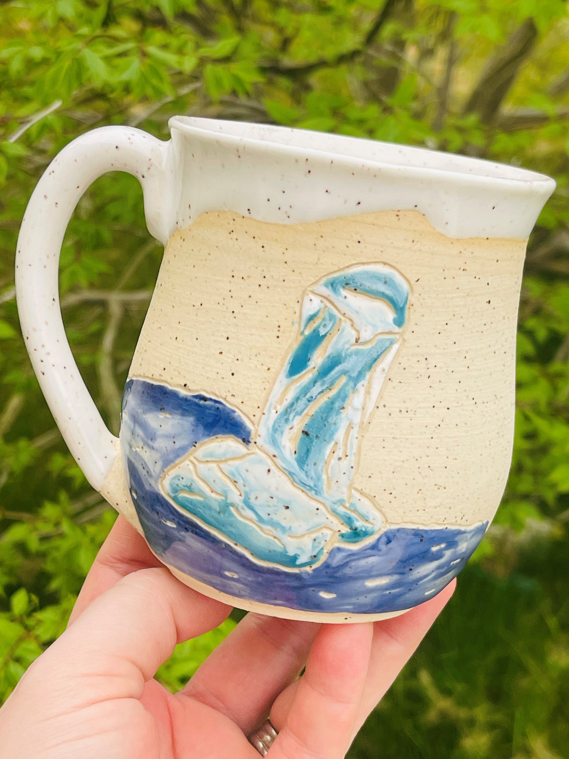 Clear rim and liner, exact combo will vary. Mug shape may vary slightly. You are ordering a made to order, functional piece of art. Each piece is unique and one of a kind.