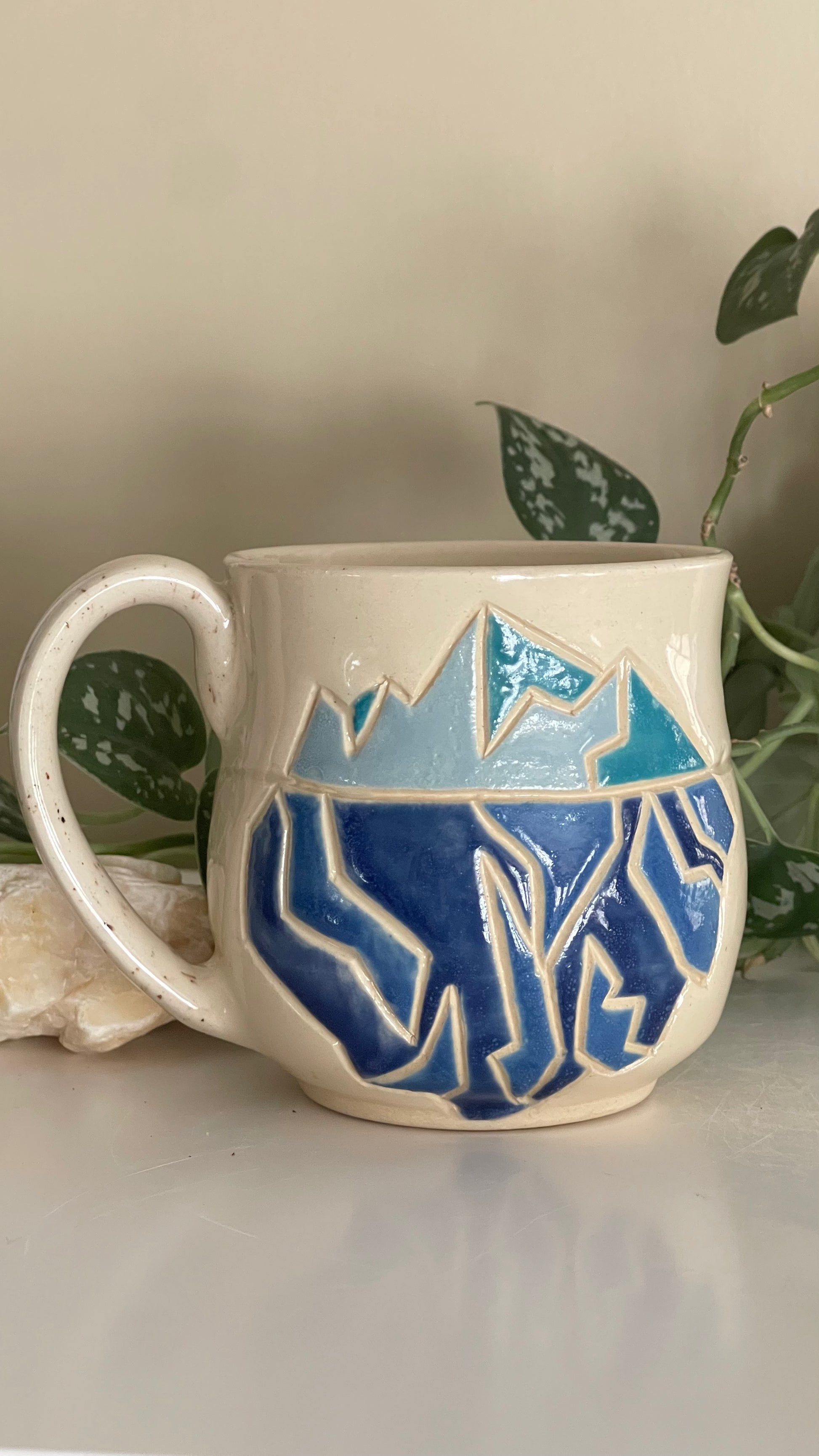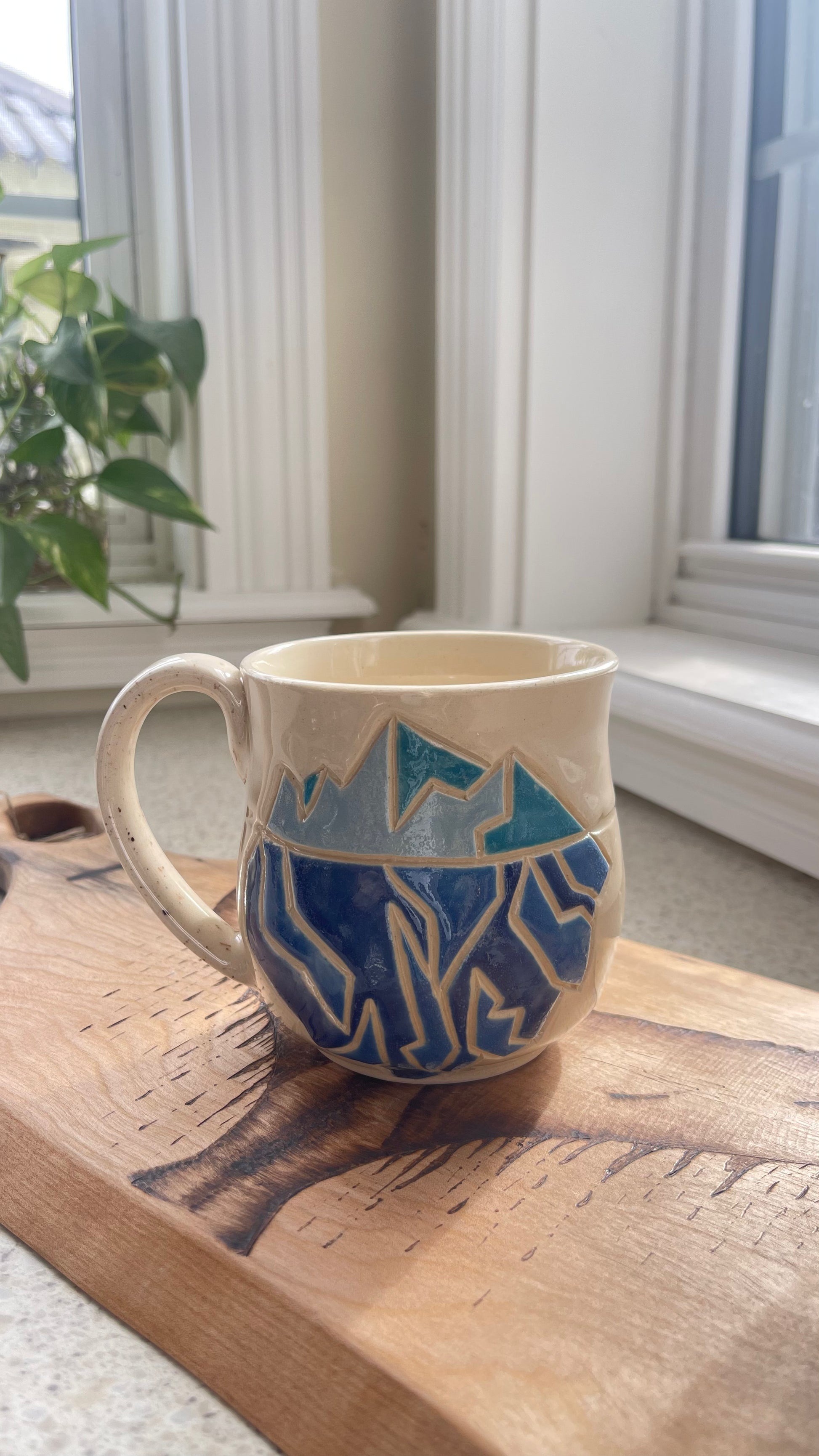 Colourful rim and liner, exact combo will vary. Mug shape may vary slightly. You are ordering a made to order, functional piece of art. Each piece is unique and one of a kind.