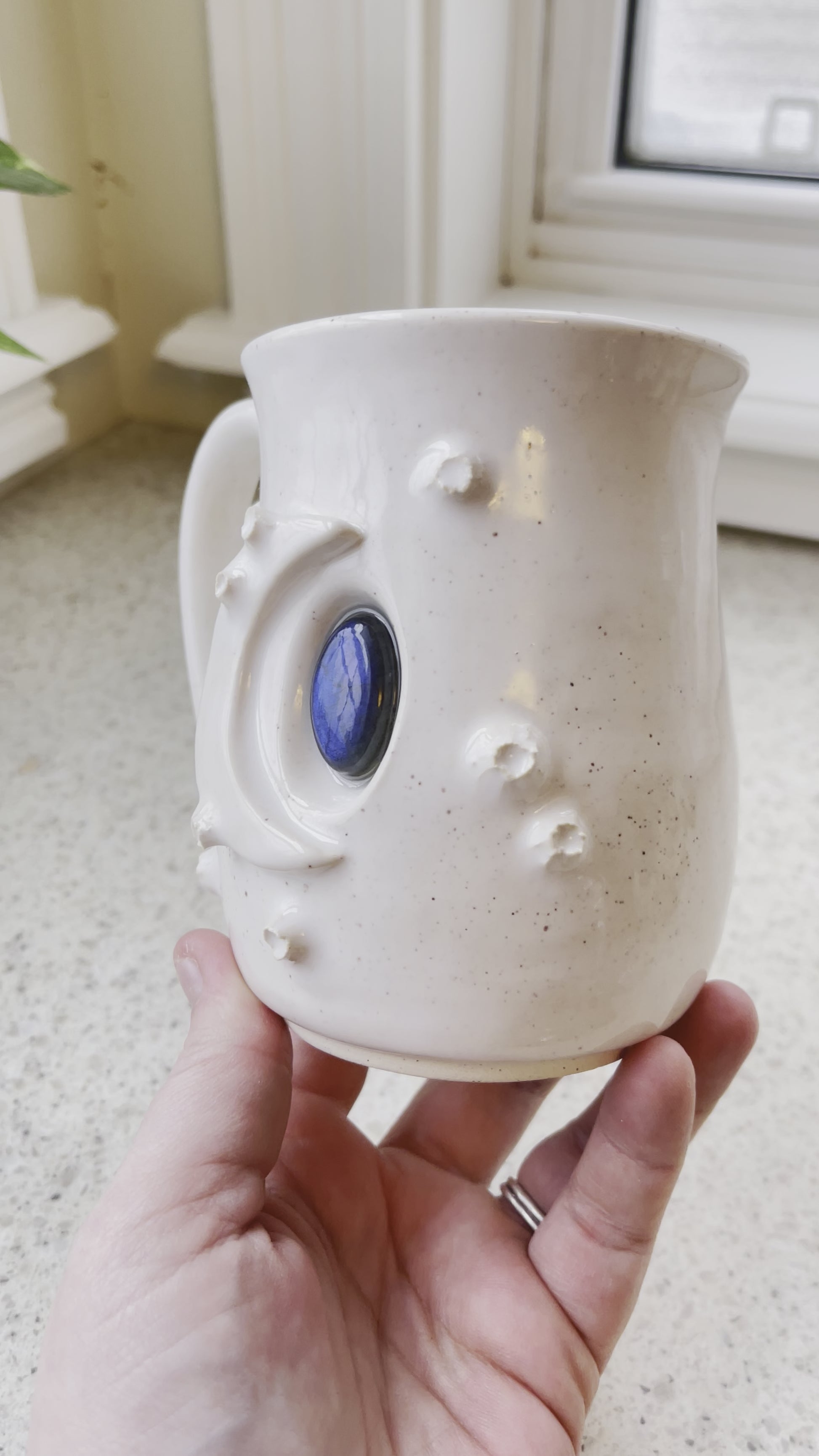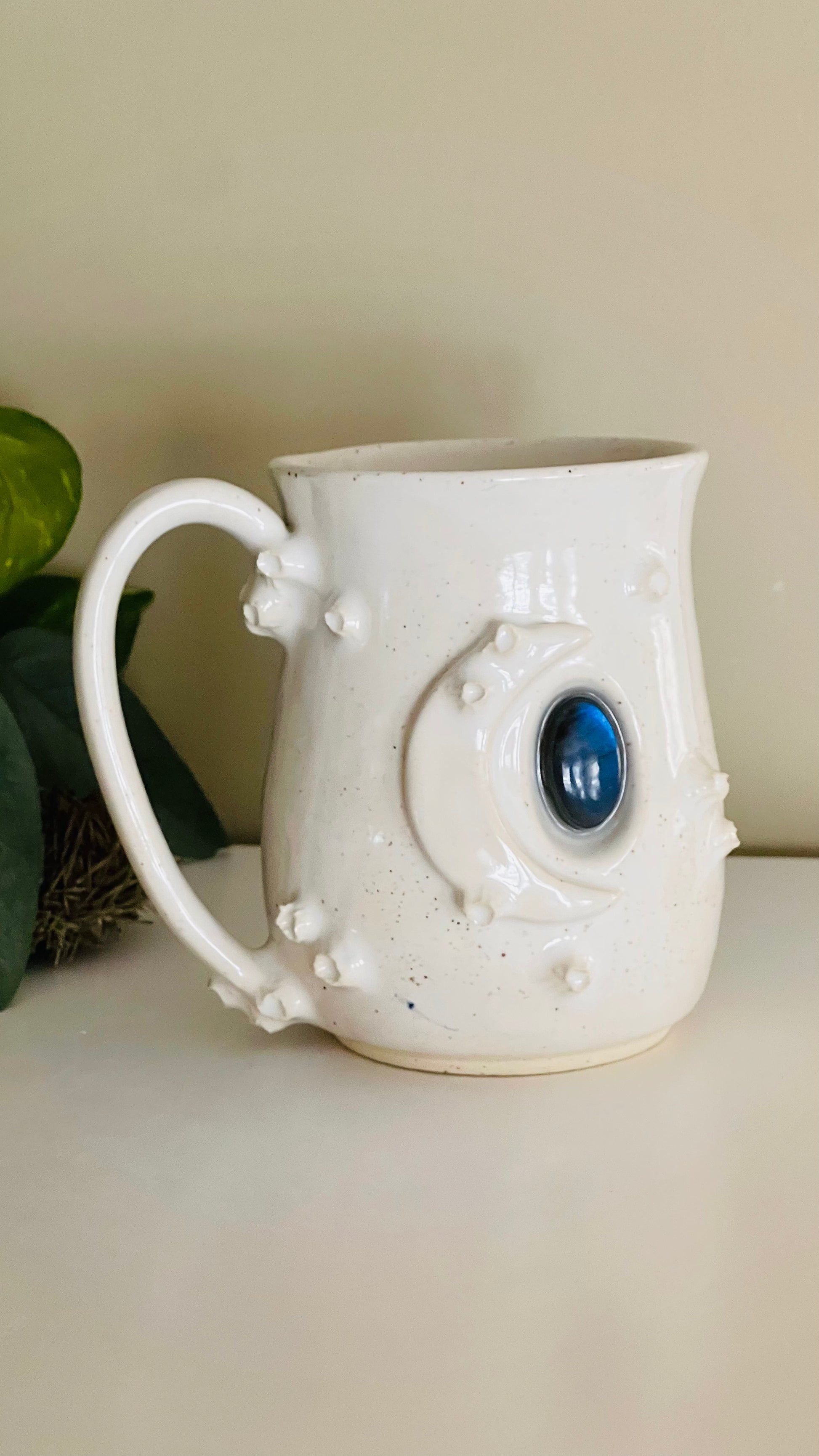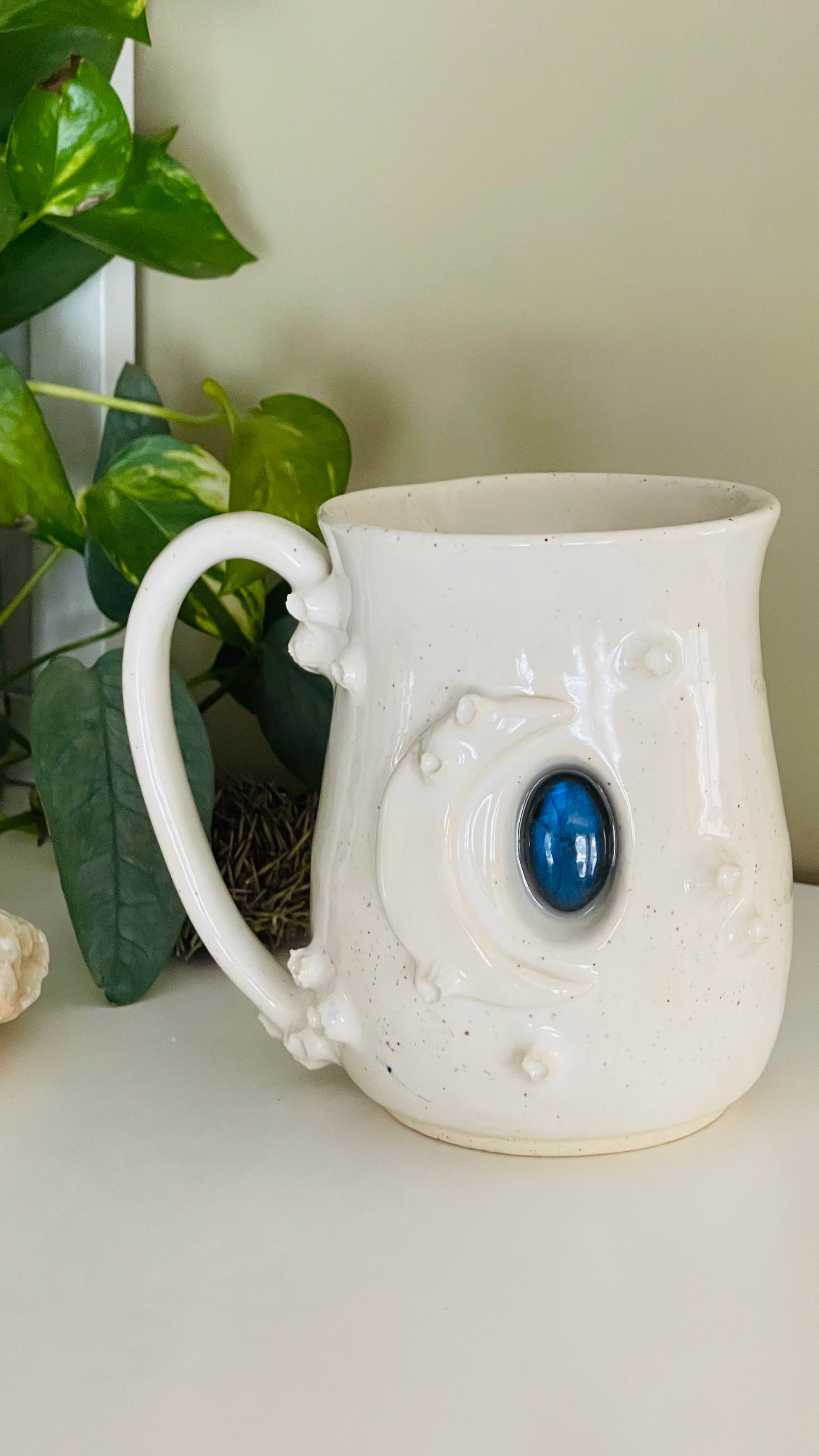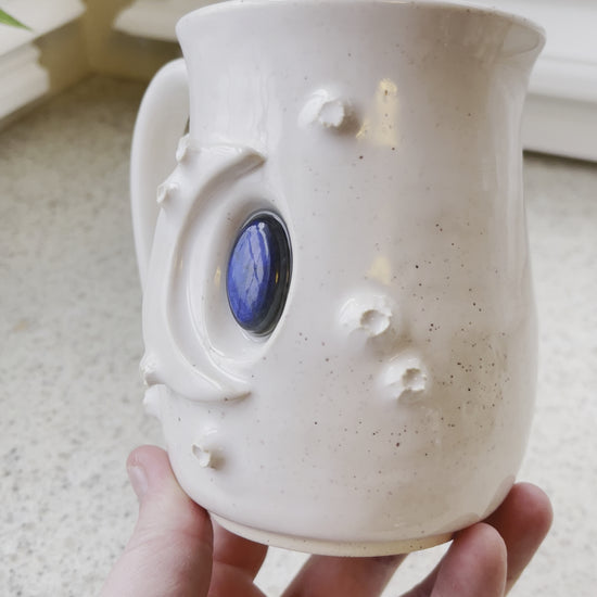 Hand sculpted and glazed, this piece of functional art includes a piece of beautiful Labradorite.