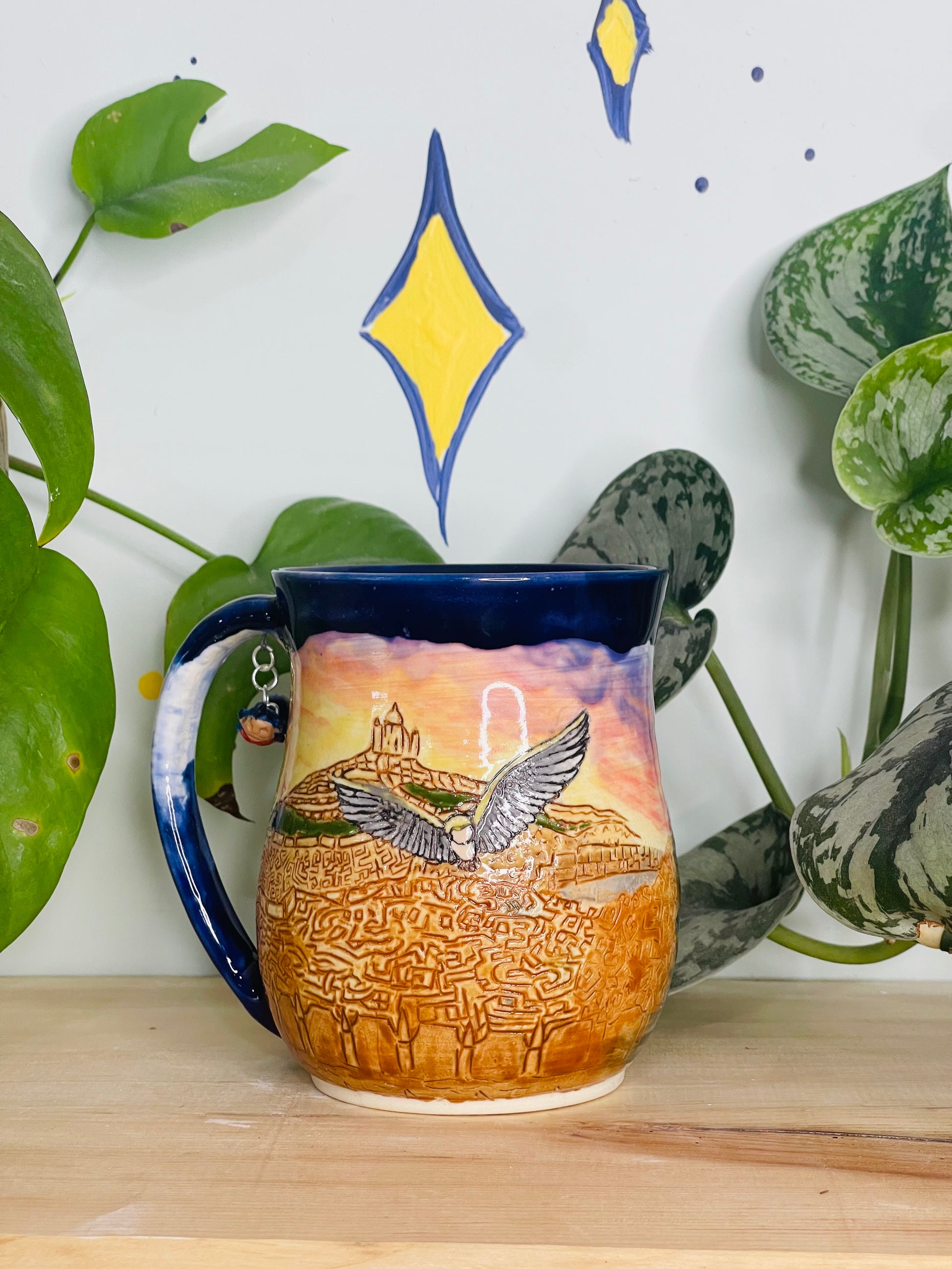 This listing includes ONLY Side B (Goblin City + castle). The back of the mug will be clear glazed.