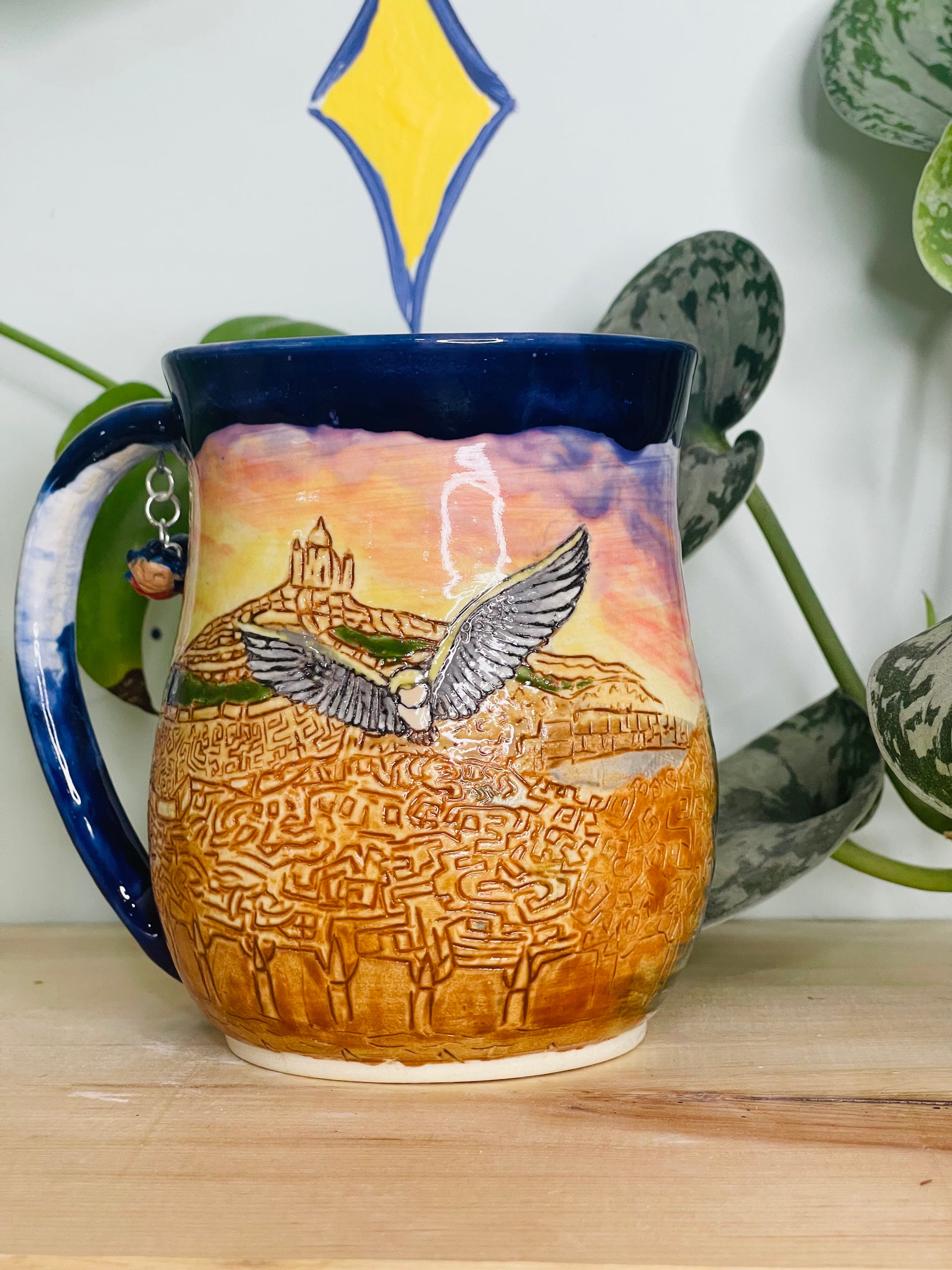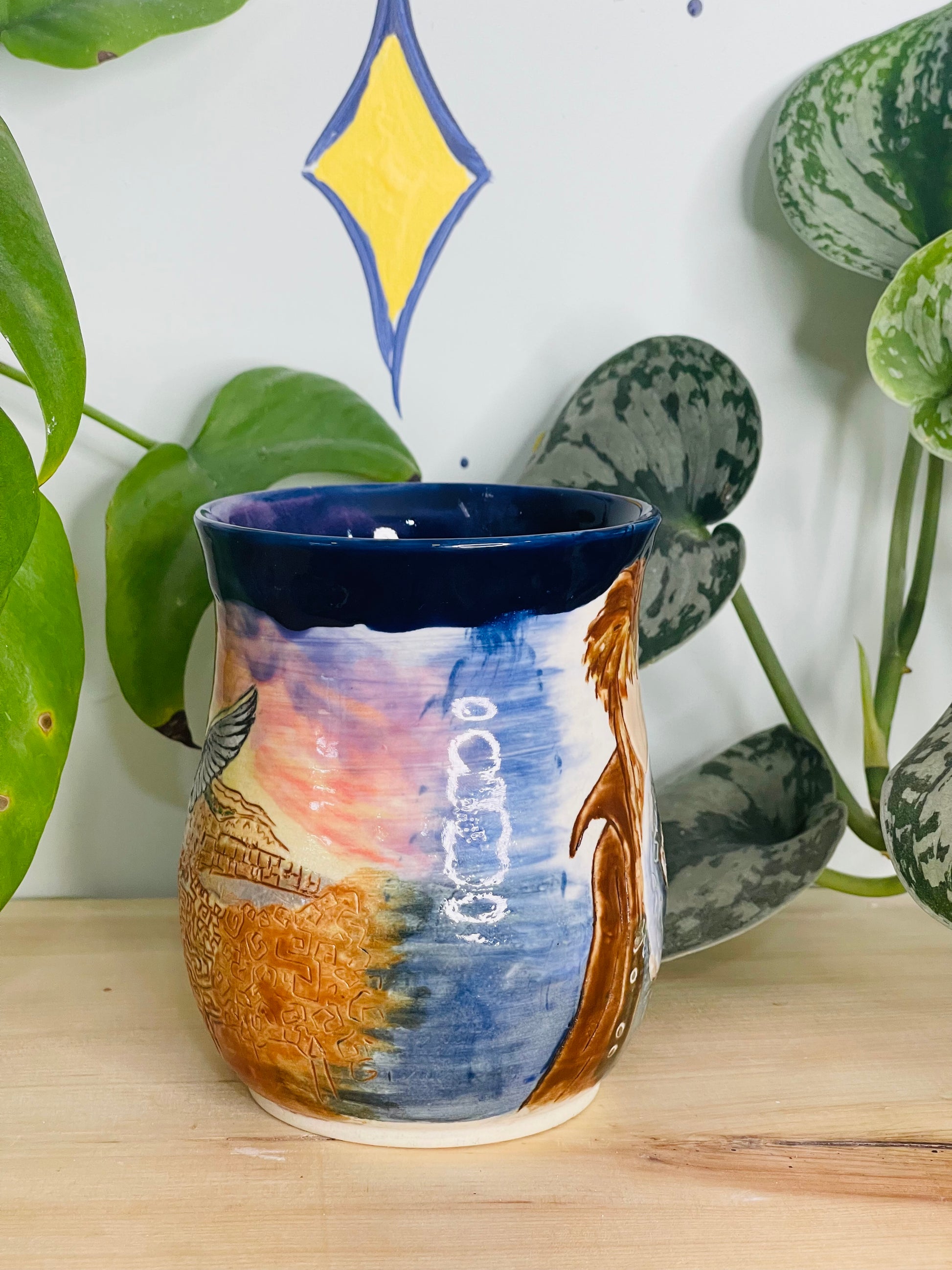 Colourful rim and liner, exact combo will vary. Mug shape may vary slightly. You are ordering a made to order, functional piece of art. Each piece is unique and one of a kind.