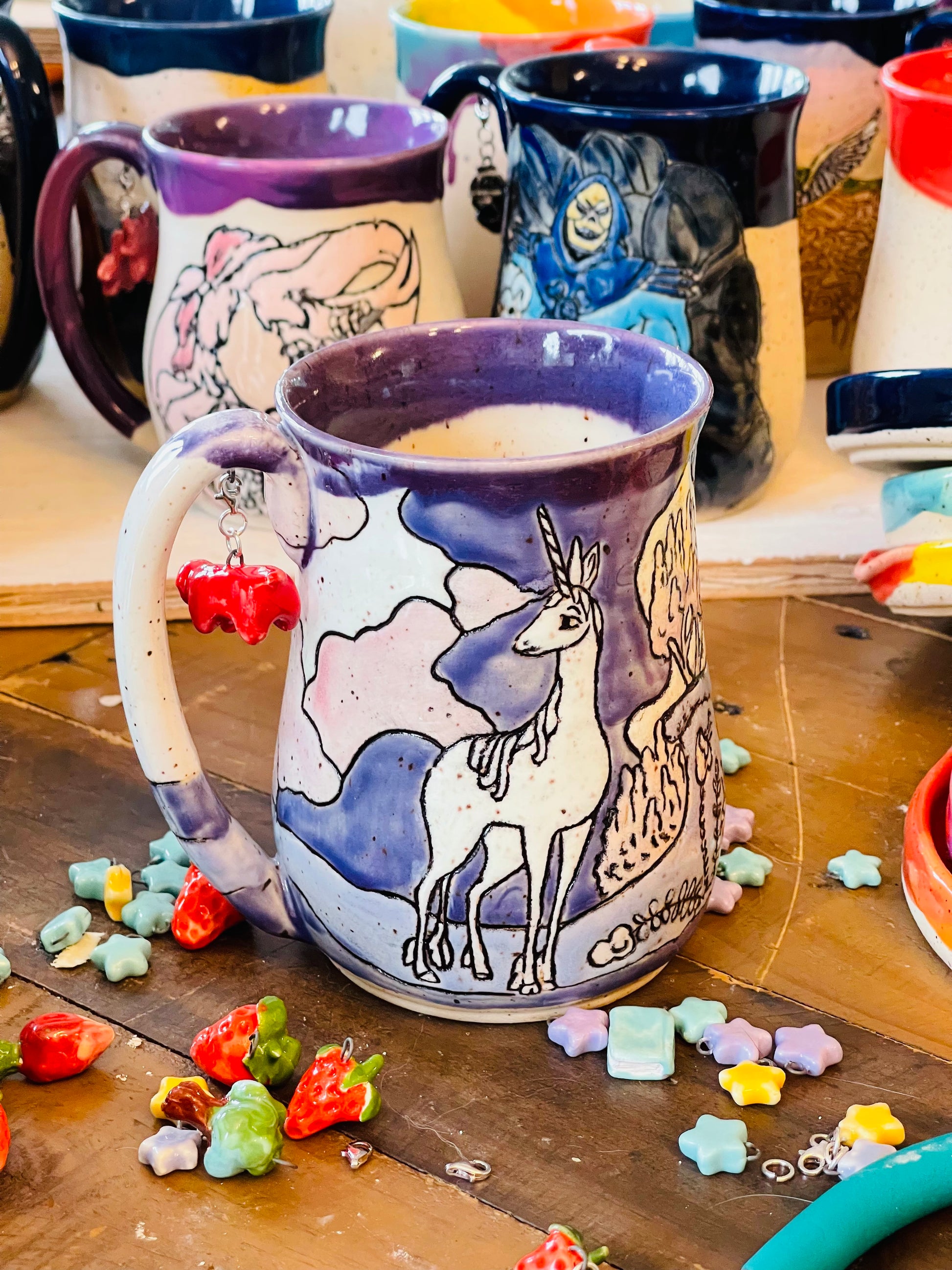 Purple rim + liner. Mug shape may vary slightly. You are ordering a made to order, functional piece of art. Each piece is unique and one of a kind.
