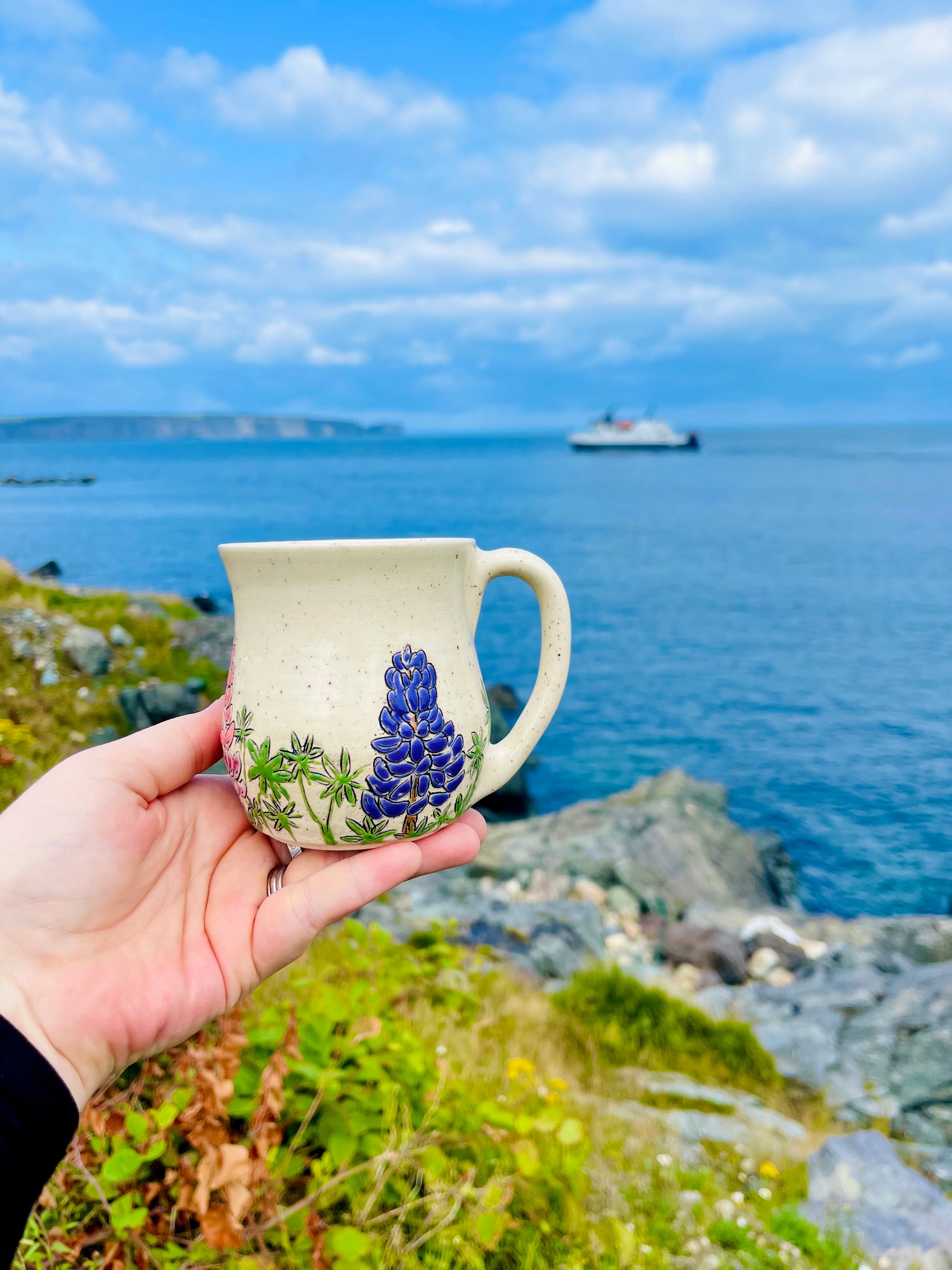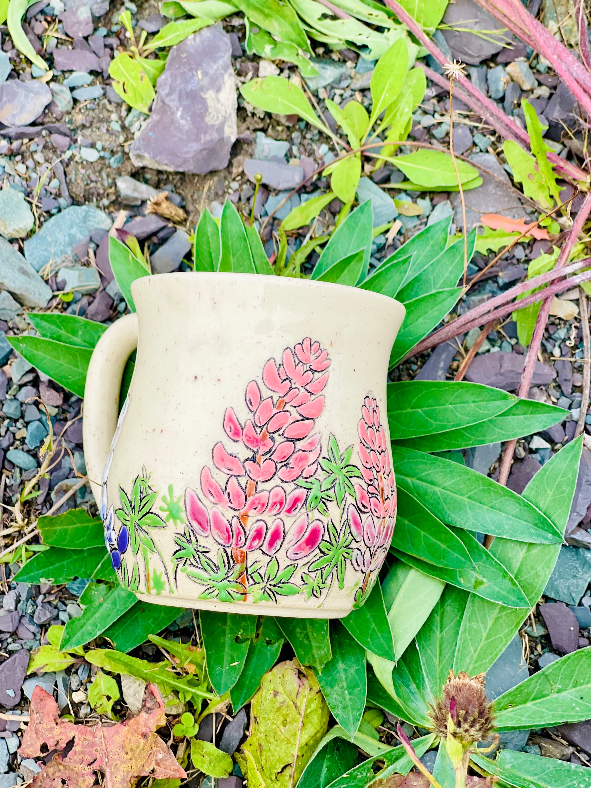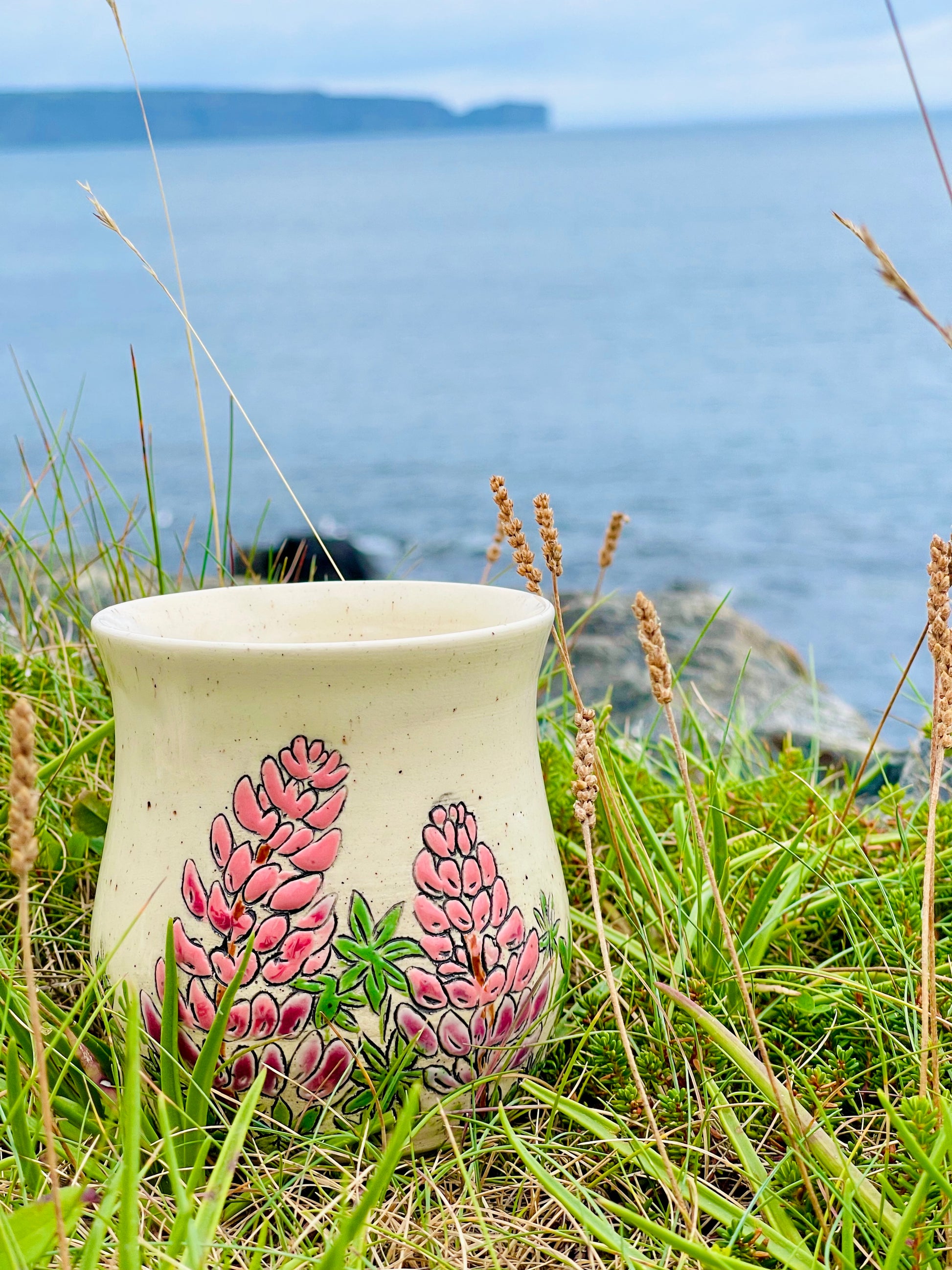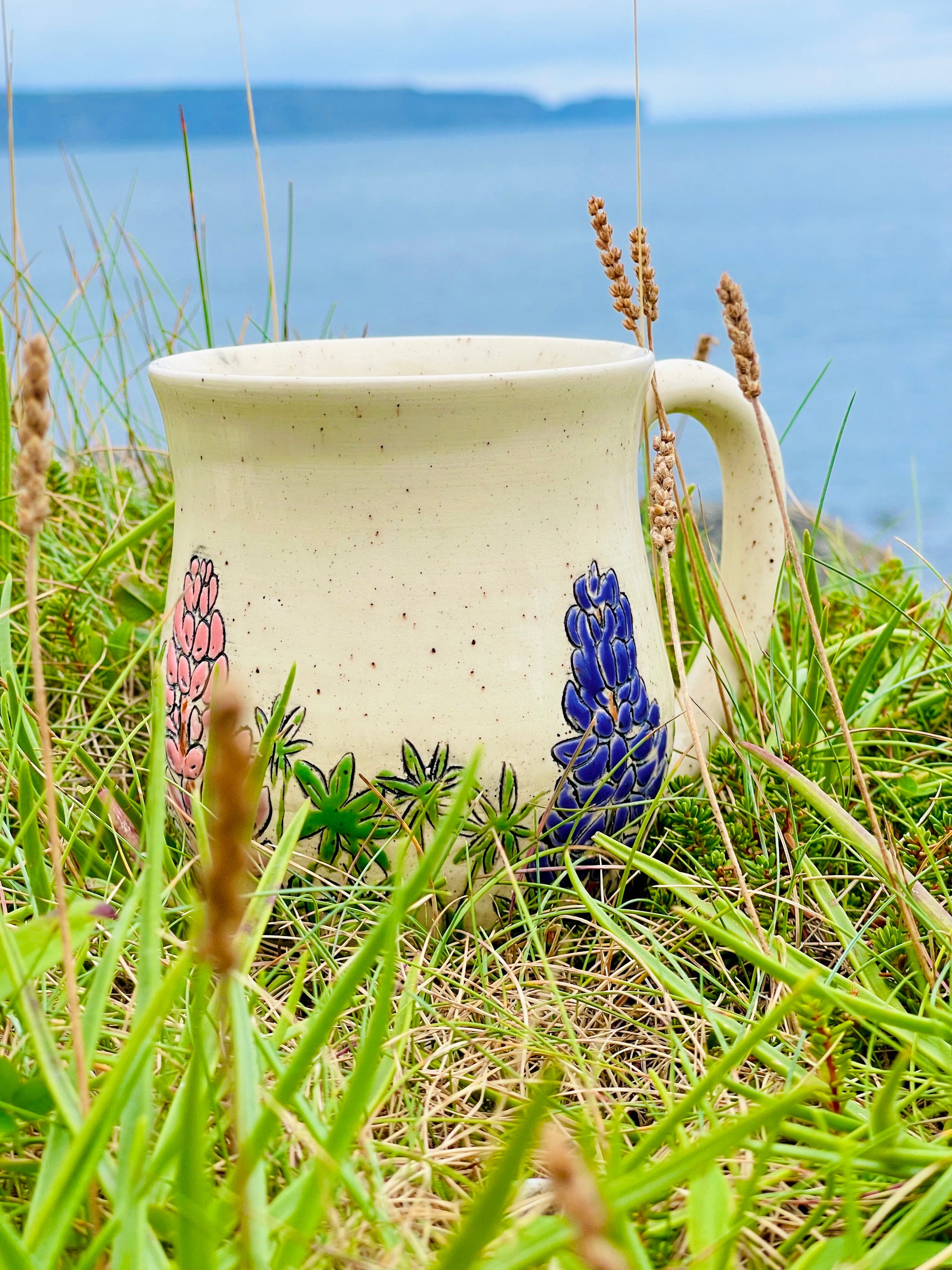 Clear rim and liner, exact combo will vary. Mug shape may vary slightly. You are ordering a made to order, functional piece of art. Each piece is unique and one of a kind.