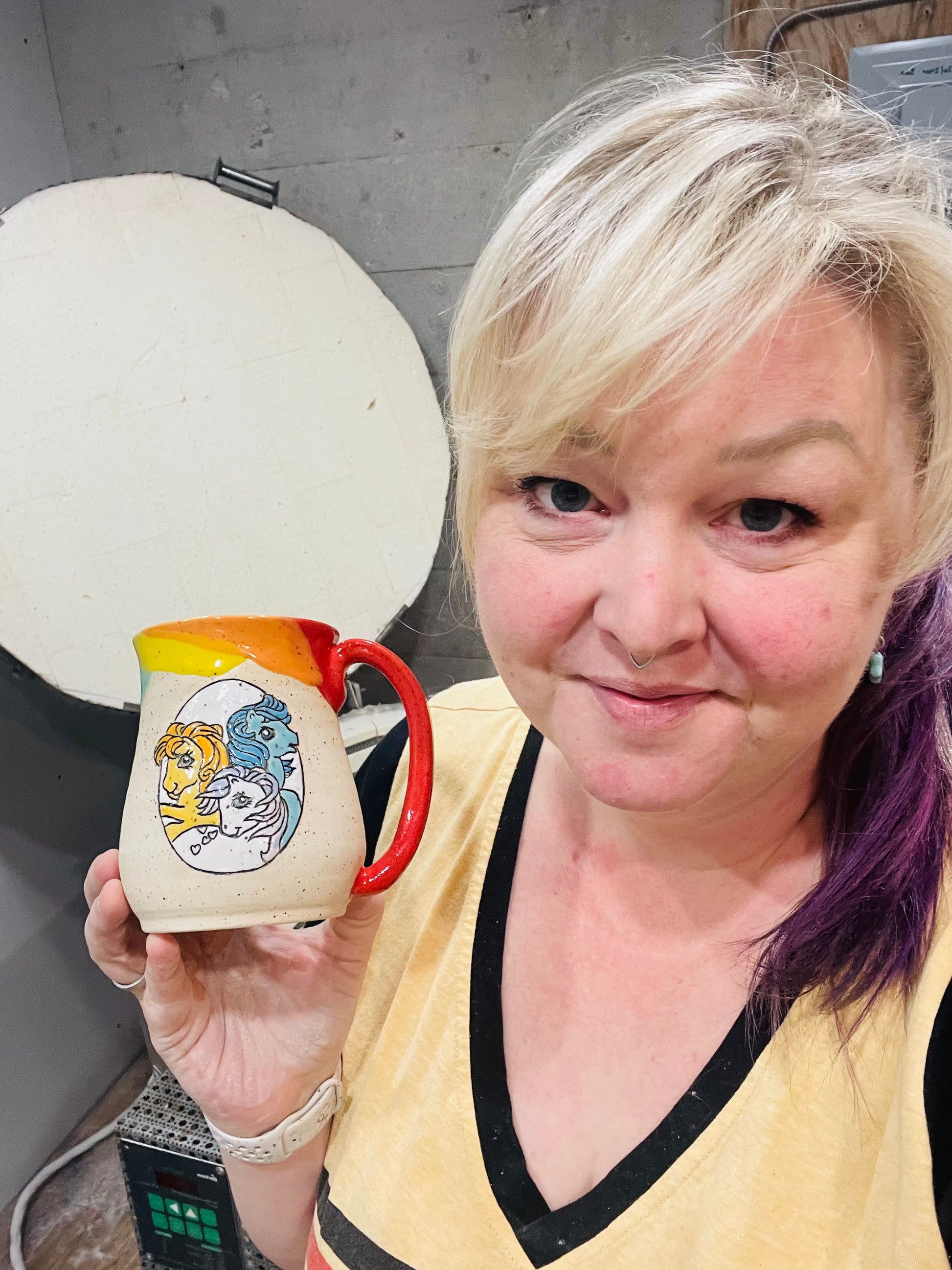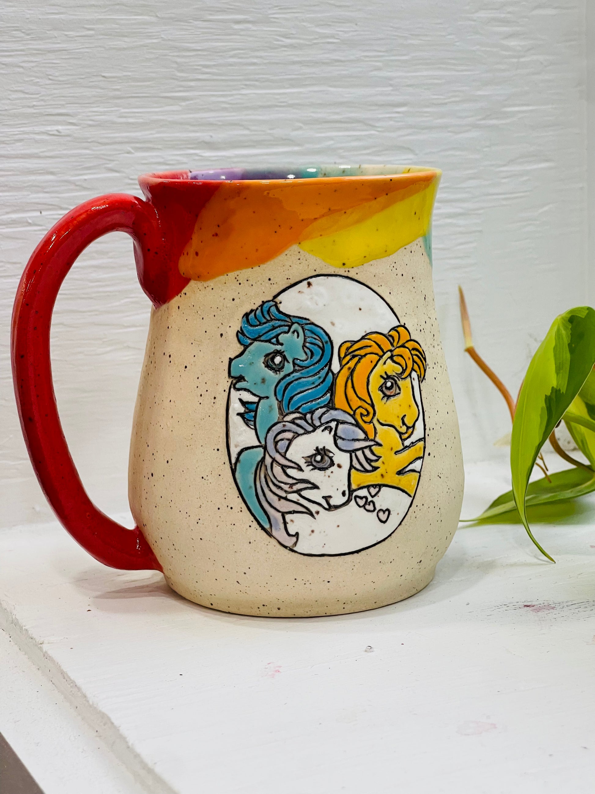 Colourful rim and liner, exact combo will vary. Mug shape may vary slightly.