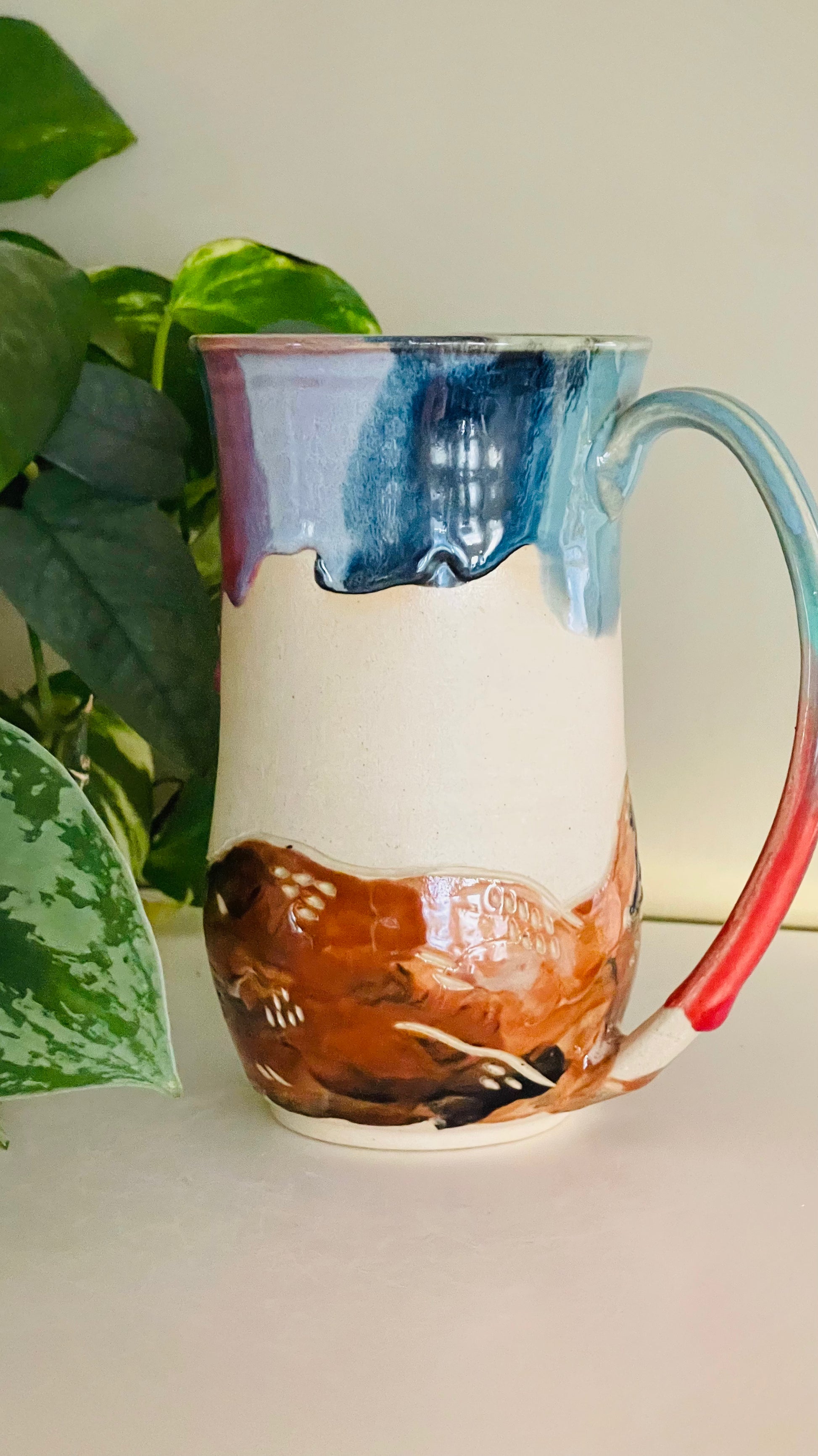 Colourful rim and liner, exact combo will vary. Mug shape may vary slightly. You are ordering a made to order, functional piece of art. Each piece is unique and one of a kind. This item is handmade and may have flaws or imperfections. Such markings occur as part of the creation process which gives each item it's unique character.