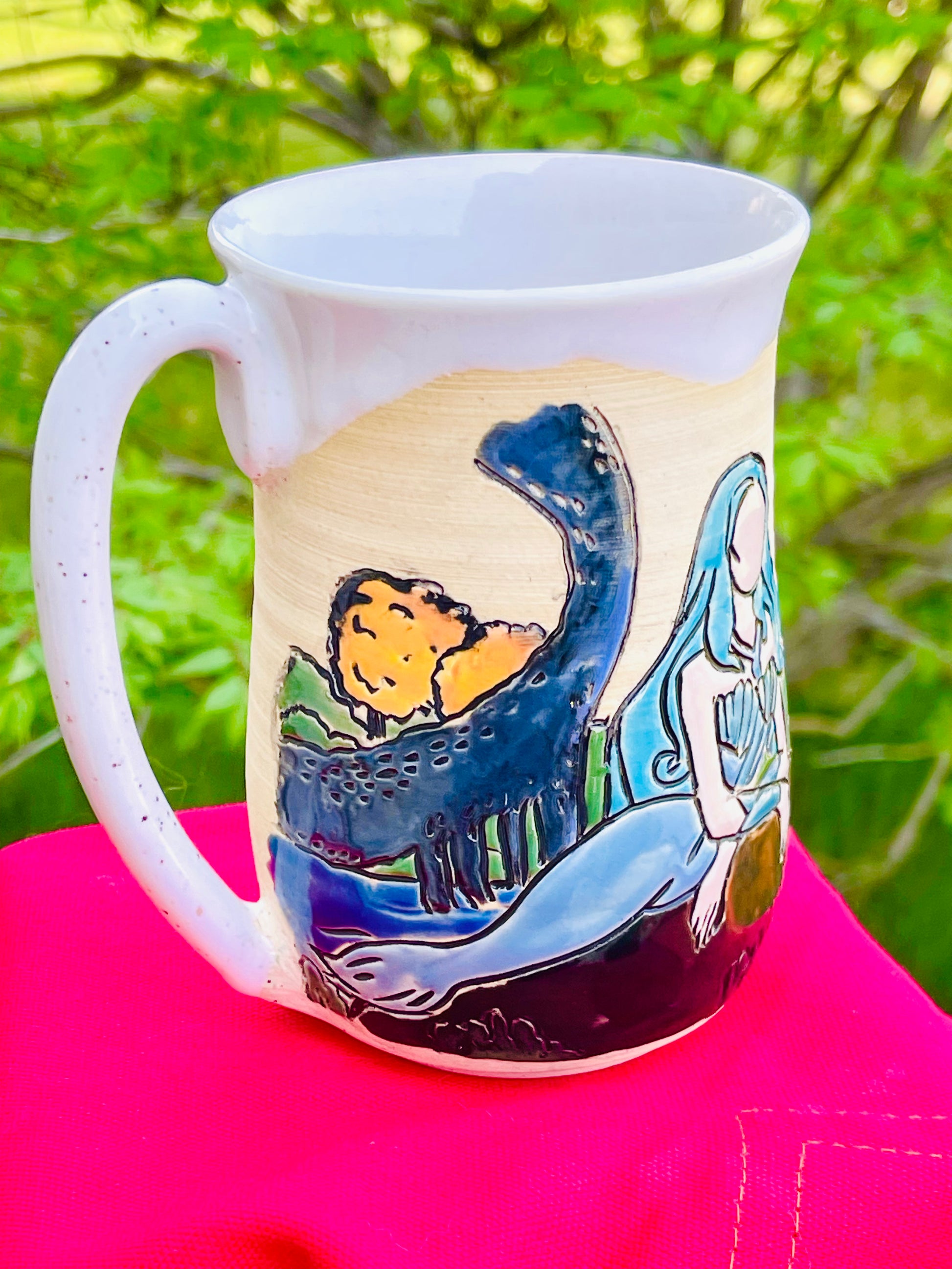 Colourful rim and liner, exact combo will vary. Mug shape may vary slightly.
