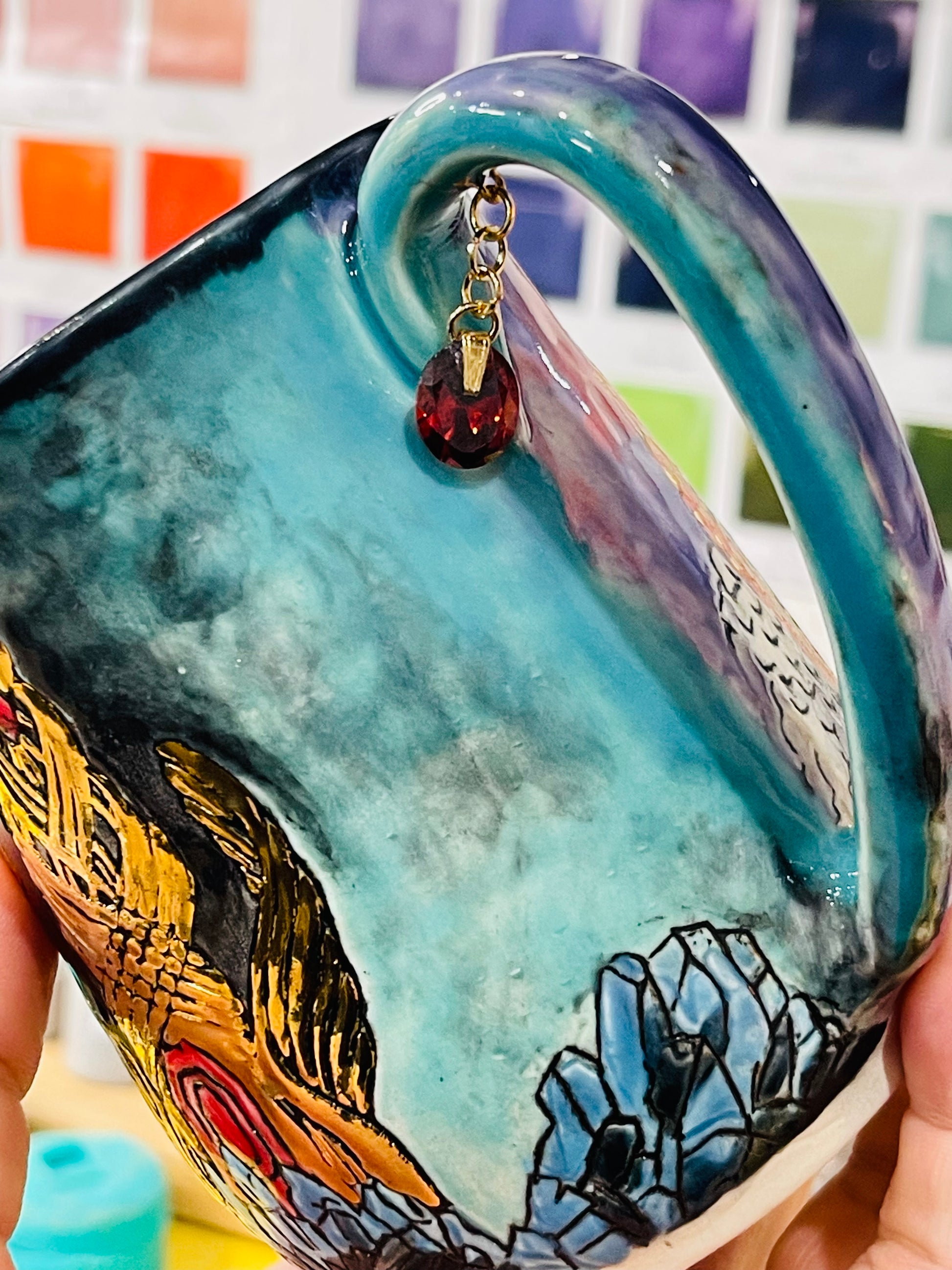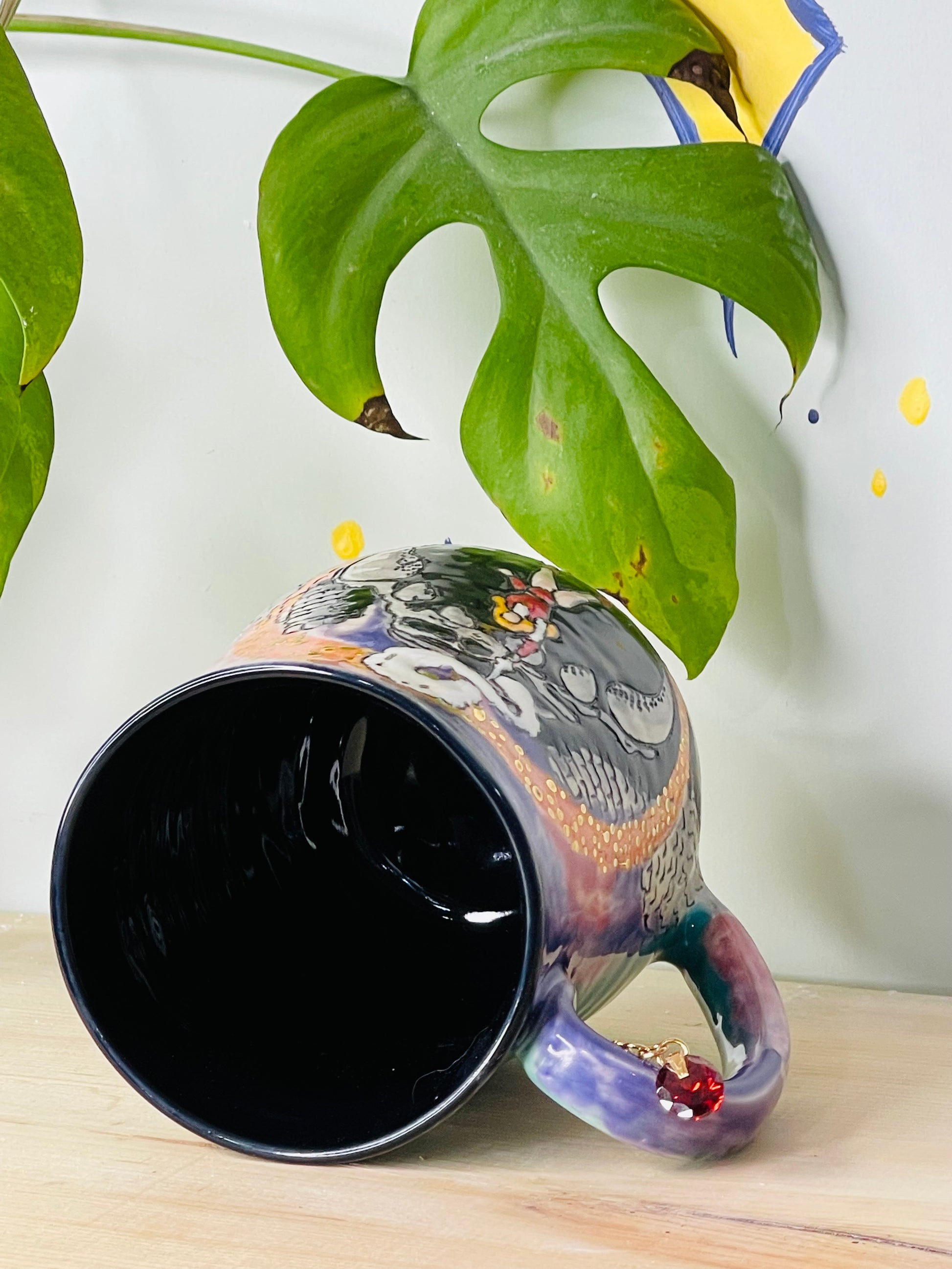 Black rim and liner. Mug shape may vary slightly. You are ordering a made to order, functional piece of art. Each piece is unique and one of a kind.