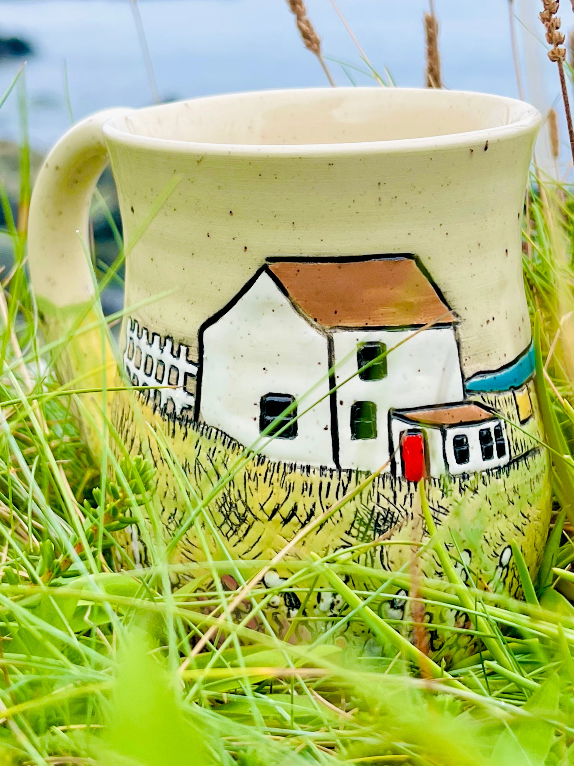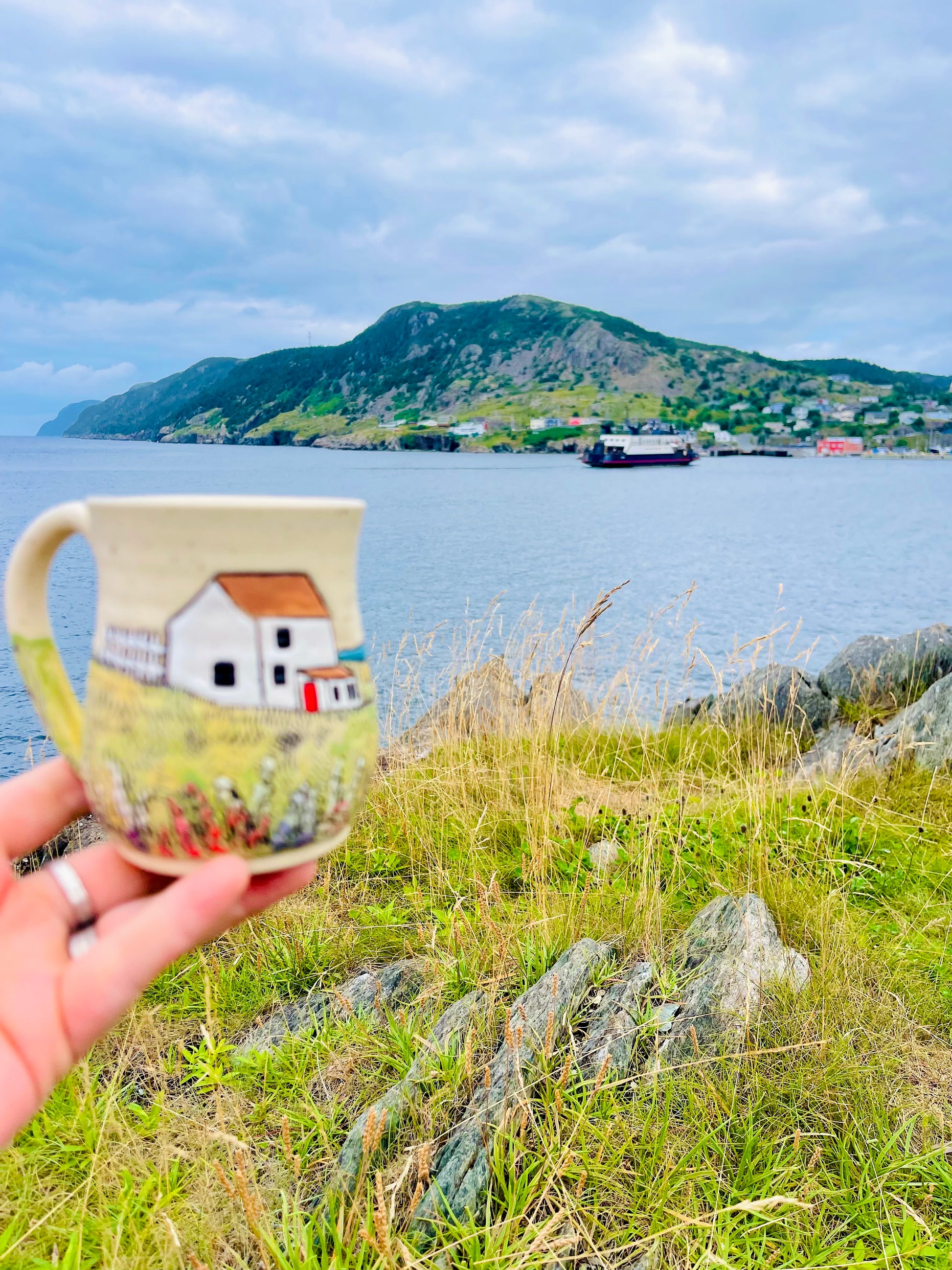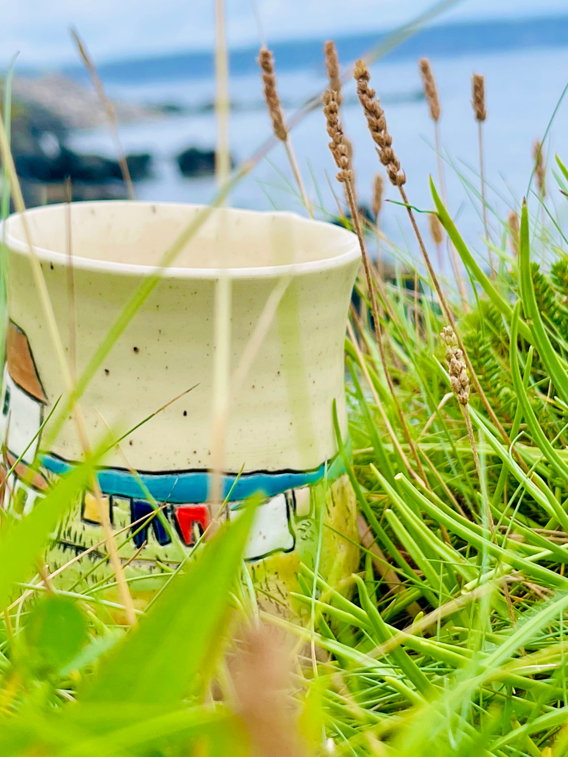 Clear rim and liner, exact combo will vary. Mug shape may vary slightly. You are ordering a made to order, functional piece of art. Each piece is unique and one of a kind.
