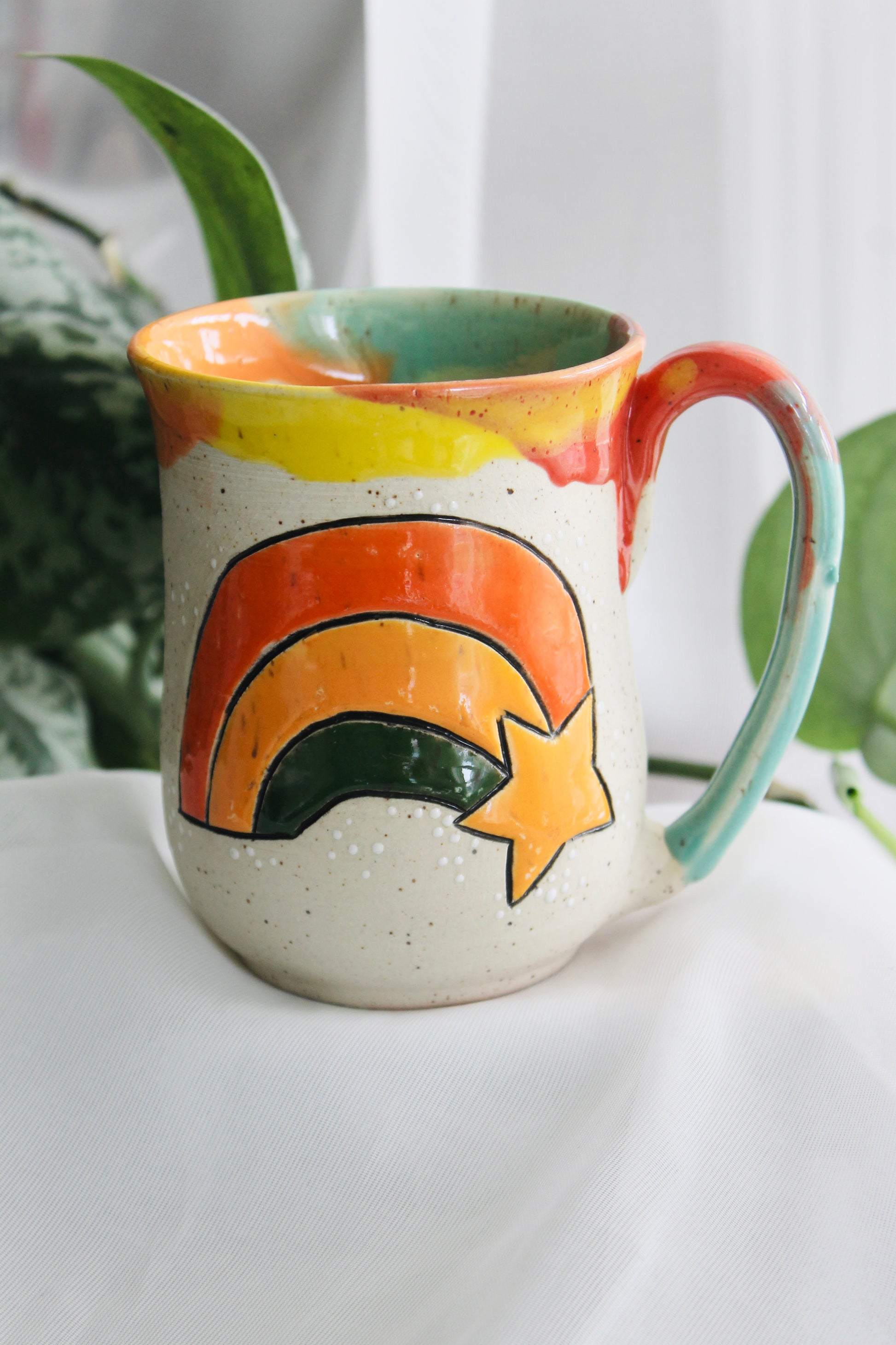 Colourful rim and liner, exact combo will vary. Mug shape may vary slightly.