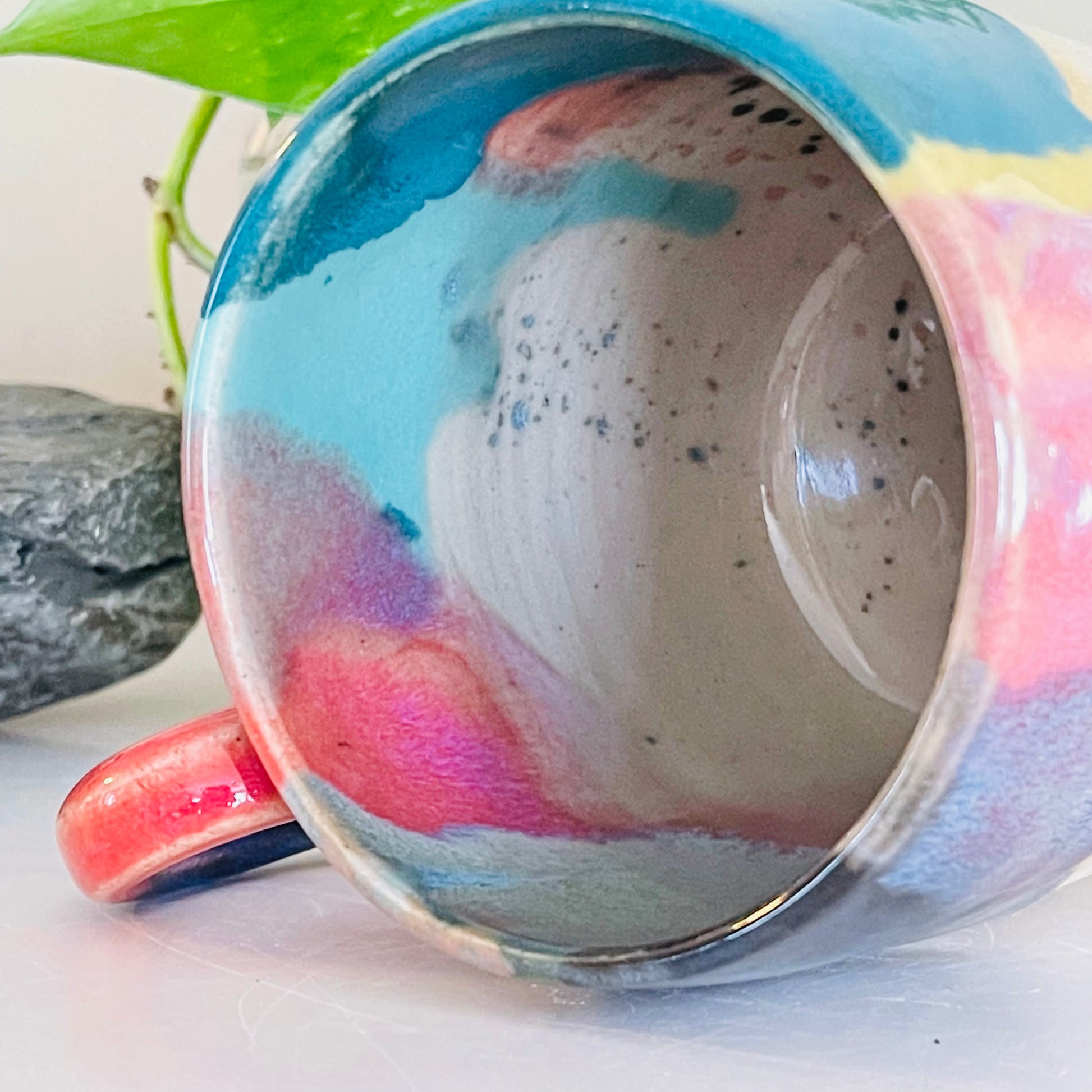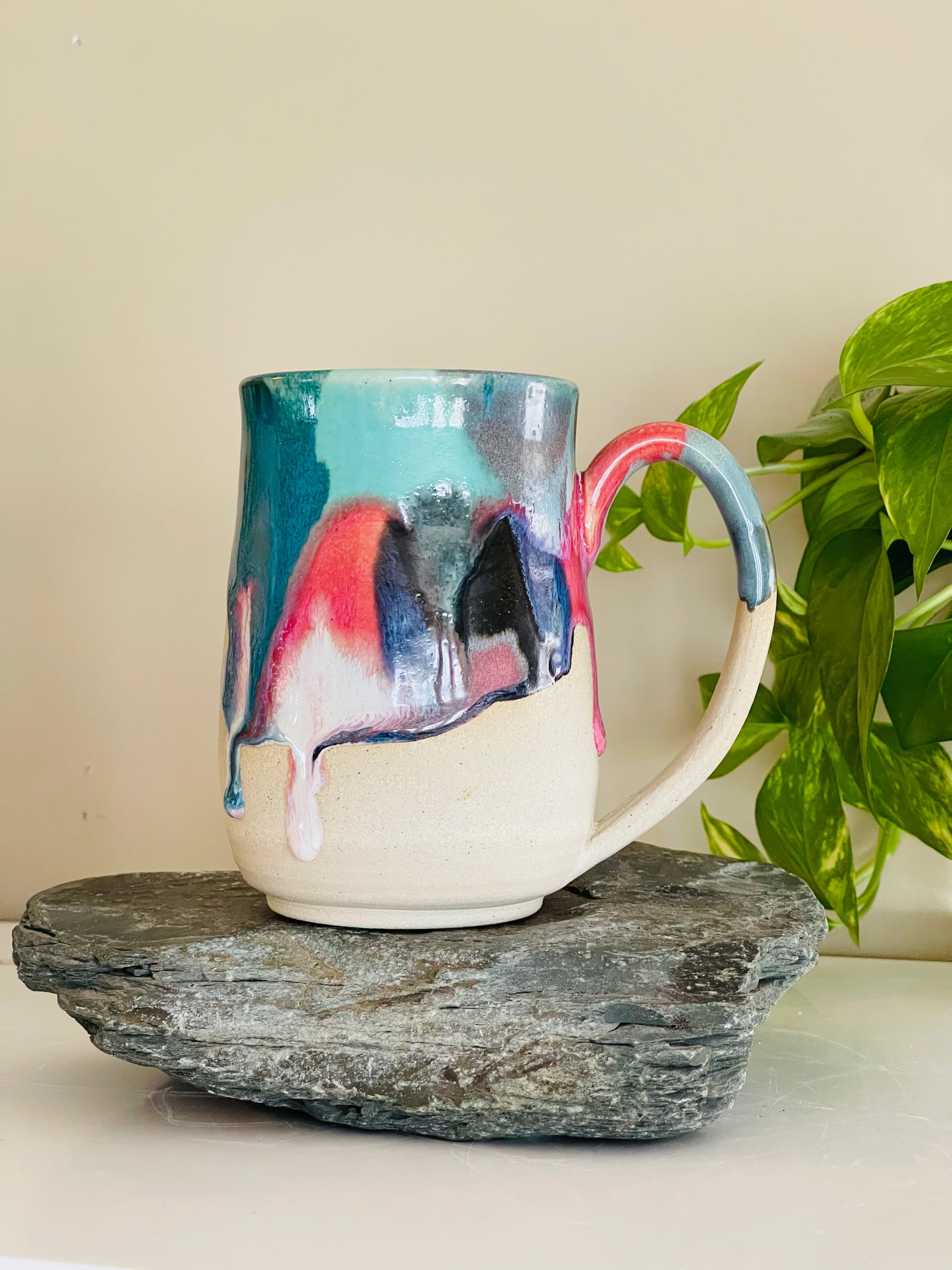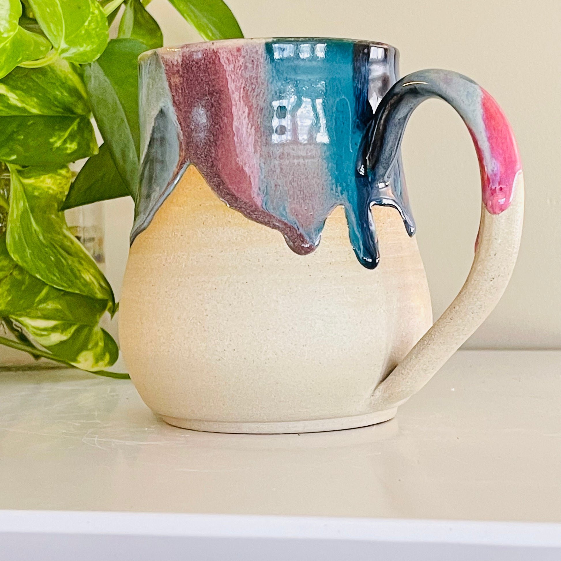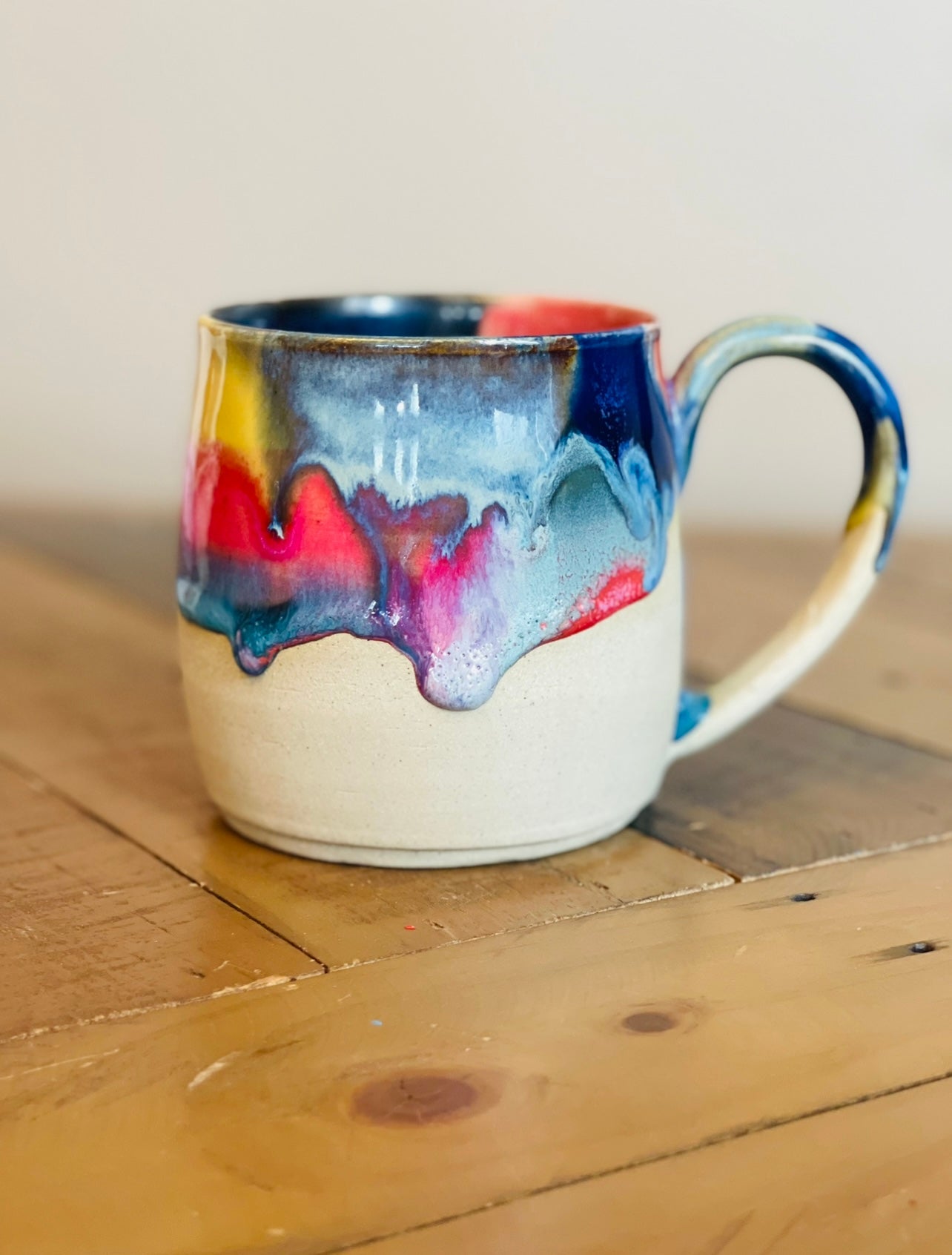 Colourful rim and liner, exact combo will vary. Mug shape may vary slightly. You are ordering a made to order, functional piece of art. Each piece is unique and one of a kind. This item is handmade and may have flaws or imperfections. Such markings occur as part of the creation process which gives each item it's unique character.